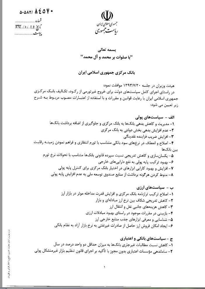 پیرو نامه شماره 93.277426 مورخ 1393.10.17 مدیریت کل مقررات، مجوزهای بانکی و مبارزه با پولشویی، این بانک موضوع ابلاغ مراتب برگرفته از بندهای (3)، (4) و (5) از بخش (ج) سیاست های بانکی و اعتباری مجموعه سیاستهای دولت برای خروج غیرتورمی از رکود، به استحضار می رساند حسب تصویب نامه شماره 25094.ت 52841هـ مورخ 1395.3.3هیئت محترم وزیران، شرکت های تعاونی مسکن از شمول جزءهای (3) و (4) بند (ج) تصمیمنامه شماره 50582.84570 مورخ 1393.7.26 مستثنی میباشند.