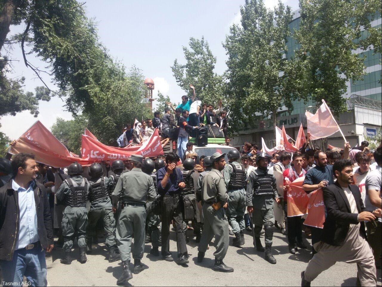 در این تظاهرات، نیروهای امنیتی افغان با معترضین درگیر شدند و 3 نفر از تظاهراتکنندگان زخمی شدند که حال یکی از آنها وخیم اعلام شده است.