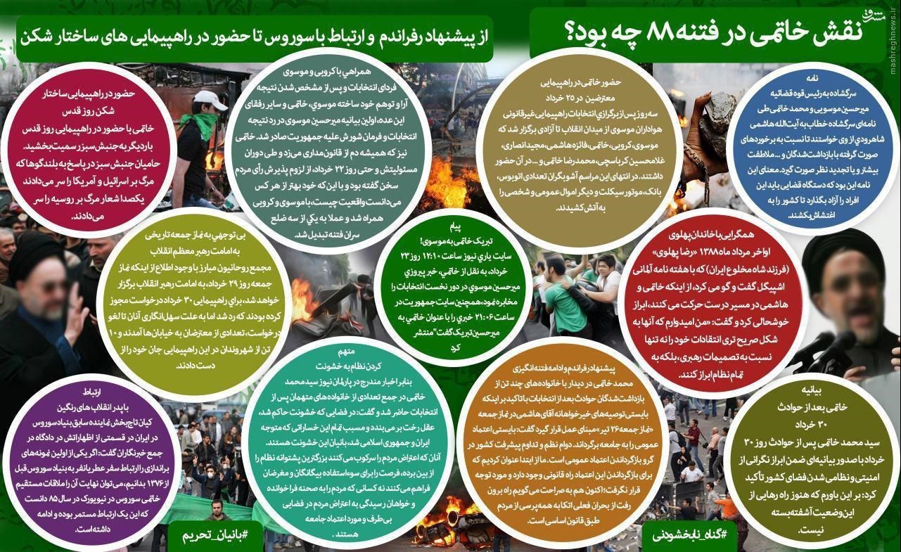 در اینفوگرافیک پیش رو، مروری کرده‌ایم بر اقدامات یکی از سران فتنه 88 که پس از خطبه مشهور رهبر معظم انقلاب در 29 خرداد، اقدامات فتنه‌گرانه خود را تکرار کرد.