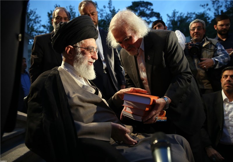 در همین حین احوالپرسیها و امضا کردنها، آقا میرسند، جماعت بلند میشوند، راه میافتند جلوتر تا یکییکی محضر رهبری برسند. همان ابتدا آقای موسوی گرمارودی که صف اول نشسته بود، ترجمه کامل نهجالبلاغه را تقدیم میکند. آقا اثر را ورق میزنند و میگویند خیلی کار خوبی کردید. انشاء الله استفاده میکنیم. تکتک سلام و احوالپرسی میکنند، مخصوصاً با آنها که عقبتر ایستادهاند. عباس براتی پور مجموعه شعر «باران» را تقدیم آقا میکند. مجموعه شعر از 200 شاعر جوان است. نفر بعدی میرسد، آقا از حالوروز اهل ادب خبر دارد: «کسالتتان برطرف شد؟». رضا برجی از شیعه شدن کاردینالی در اکراین خبر میدهد. کتاب خون گریه و سوگنامه حضرت مهدی (عج) احد ده بزرگی تقدیم آقا میشود. آقا میپرسند از شیراز چه خبر؟ ده بزرگی میگوید شبشعر عاشورا هم 30 ساله شد. حسین قرایی مجموعهای کتاب آورده است. از سناباد شعر و از صدای سخن شعر را در دست گرفته است. از شاعری متخلص به «بقا» در مشهد، حامل ابلاغ سلام و احوالپرسی به حضرت آقاست، آقا، احوال «بقا» را میپرسد، خنده بر لب دارد، «بقا»(آقای باقرزاده) یکی از رفقای مشهدی رهبر انقلاب است انگار. غلامرضا کافی با کتاب «انقلاب اسلامی و دفاع مقدس» جلو میآید. پژوهشی است در باب جریان شناسی ادبیات دفاع مقدس و انقلاب. آقا میگویند این کارها لازم است که صورت بگیرد. مرحوم آیینه وند مقدمه کتاب را نوشته. آقا از ایشان هم یاد میکند. انصاری نژاد از بوشهر آمده مجموعه شعرهای بلخی را آورده. آقا میگویند شعرهای خودتان البته بهتر است. شاعر کردی جلوآمده و از شعرای کرد میگوید. رهبر انقلاب میگویند خدا مرحوم ستوده را بیامرزد، خیلی با ایشان جلسه داشتیم.