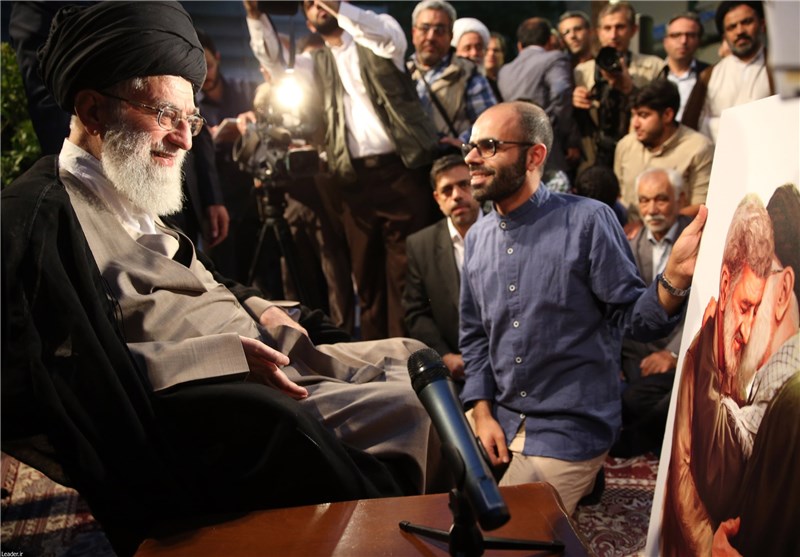 در میان جماعت شاعر، جوان طراح نقاشی پیش میآید. دانیال فرخ، کاندیدای چهره برتر هنر سال 94 تصویری کشیده بود از "آقا و احمد متوسلیان در آغوش هم". میگوید همین سحر کار را تمام کرده، تقدیم کرد و گفت: خدا کند حاج احمد برگردد. آقا گفتند: انشاءالله، ما هم امیدواریم.