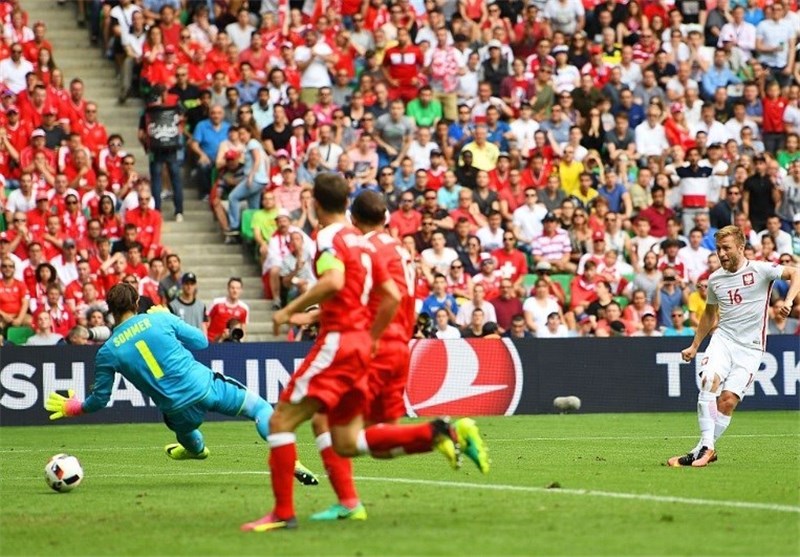 به گزارش خبرگزاری تسنیم، تیم ملی لهستان امشب (شنبه) در اولین بازی از مرحله یک هشتم نهایی یورو 2016 موفق شد سوئیس را در ضربات پنالتی با نتیجه 5 بر 4 شکست دهد و بهعنوان اولین تیم جواز حضور در مرحله یک چهارم نهایی را کسب کند.
