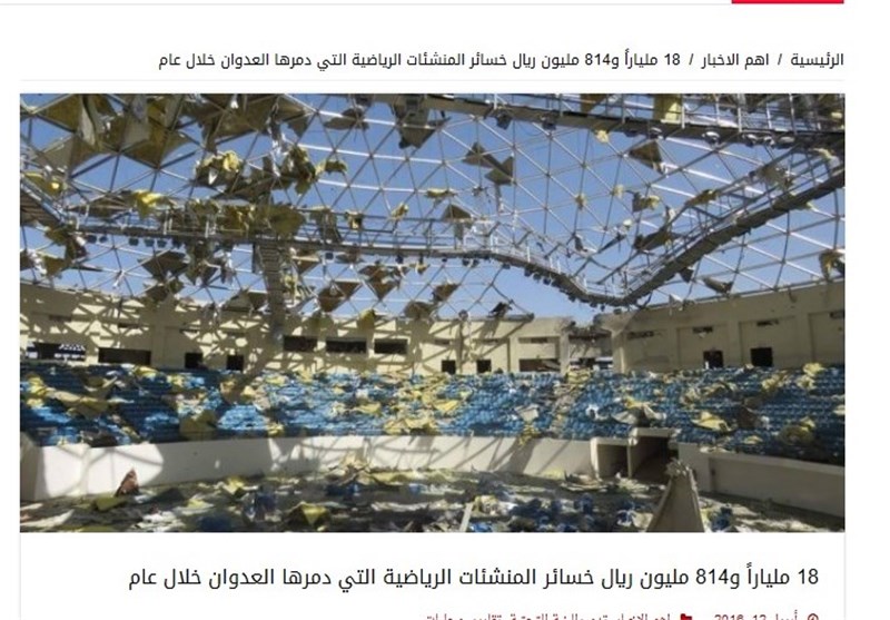 منابع یمنی از تخریب تعداد قابل توجهی از تاسیسات ورزشی یمن در حملات متجاوزان سعودی خبر داده‌اند که میزان خسارت‌ها، 81 میلیارد و 814 میلیون ریال یمنی برآورد شده است. در این حملات،‌70 ساختمان ورزشی و تاسیسات جوانان آسیب دیده است.