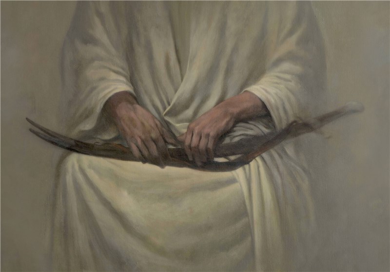 وی در این تابلو حضرت علی (ع) را در هالهای از غبار نقاشی کرده که شمشیر ذوالفقار را روی پای خود قرار دادهاند. ذوالفقاری که نماد جدا کننده حق و باطل است.