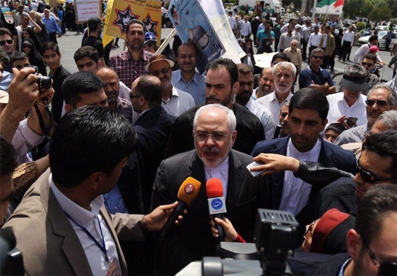 10:45: محمد جواد ظریف وزیر امور خارجه در راهپیمایی روز قدس حضور یافت.