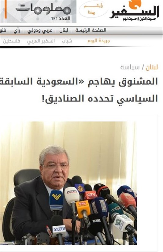 نهادالمشنوق وزیر کشور لبنان وابسته به جریان المستقبل اخیرا در مصاحبه با شبکه لبنانی ال بی سی، یک بمب خبری بزرگ منفجر کرد و از دخالتهای گسترده آل سعود در امور داخلی لبنانیها سخن گفت و به صراحت اظهار داشت سیاستهای ریاض،لبنانیها را به اینجا رسانده است.