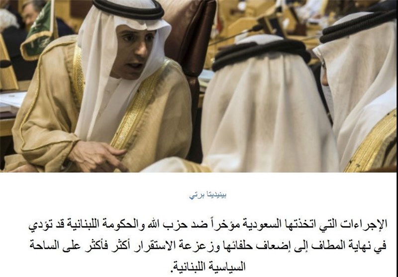 در این مقاله آمده بود تدابیر اخیر ریاض برای اعمال فشارهای مالی و دیپلماتیک بر لبنان نشان میدهد که چه بسا لبنان اولین قربانی سیاست جدید سعودی باشد در حالی که فشار بر دولت لبنان و همپیمانان سعودی در بیروت ممکن است به تضعیف دو طرف شود در شرایطی که همپیمانان ریاض در تحقق اهداف استراتژیک پادشاهی سعودی شکست خوردهاند.