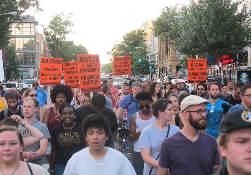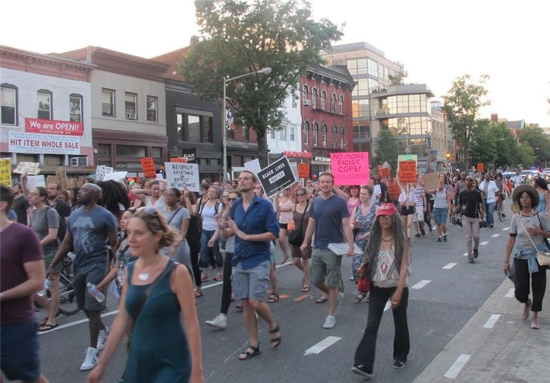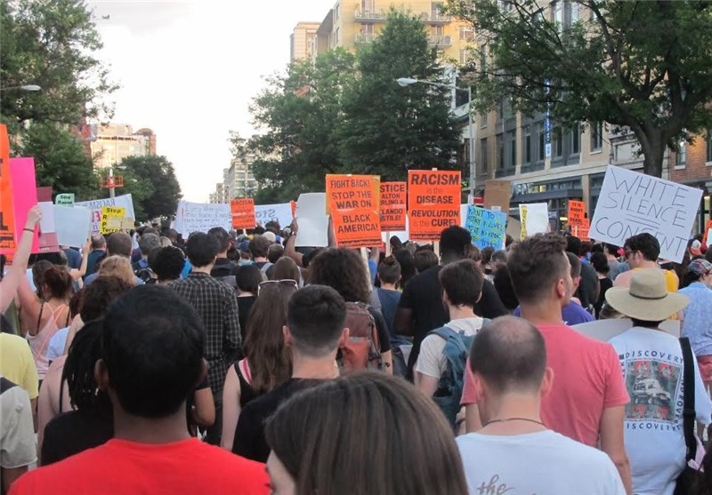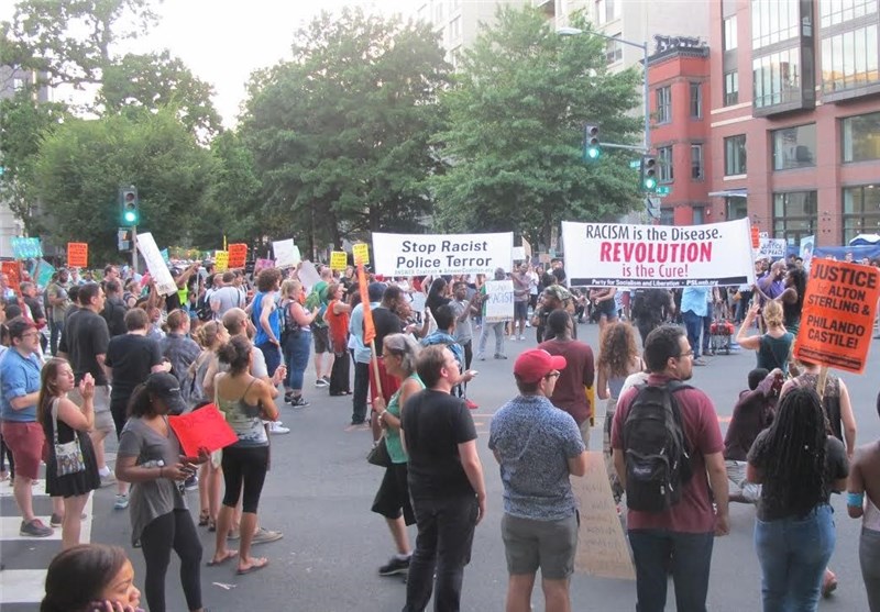به گزارش خبرنگار خبرگزاری تسنیم از واشنگتن، صدها نفر از معترضان به نژادپرستی در اعتراض به تیراندازی پلیس آمریکا به سیاهپوستان در یکی از تقاطعهای شهر واشنگتن در مقابل ساختمان "موزه و یادبود سیاهپوستان آمریکایی در جنگهای داخلی آمریکا" تجمع کردند.