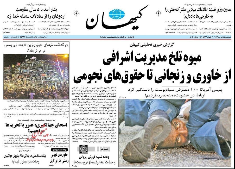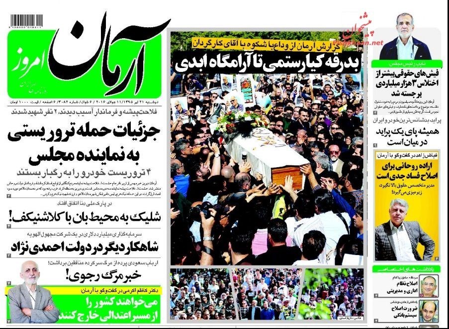 تصاویر صفحه اول روزنامه‌های دوشنبه 21 تیر