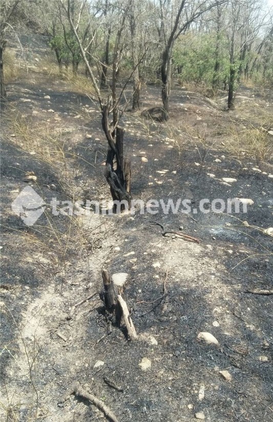 تعداد زیادی از درختان ضلع شرقی ورزشگاه آزادی در آتش سوخت.