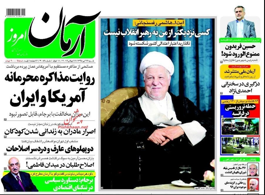 تصاویر صفحه اول روزنامه‌های شنبه 26 تیر