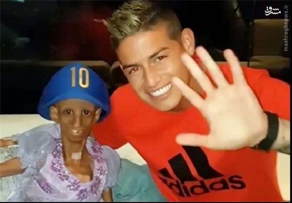 به گزارش گروه رسانه‌های خبرگزاری تسنیم،خامس رودریگس ستاره کلمبیایی باشگاه رئال مادرید اسپانیا در اقدامی ارزشمند و انسان‌دوستانه به ملاقات یک دختر عجیب رفت.وی با دیدار کردن از این دختر 15 ساله کلمبیایی که به دلیل ژنتیکی در کالبد یک پیرزن 90 ساله قرار گرفته است، آروز و رویاهای او را برآورده کرد.