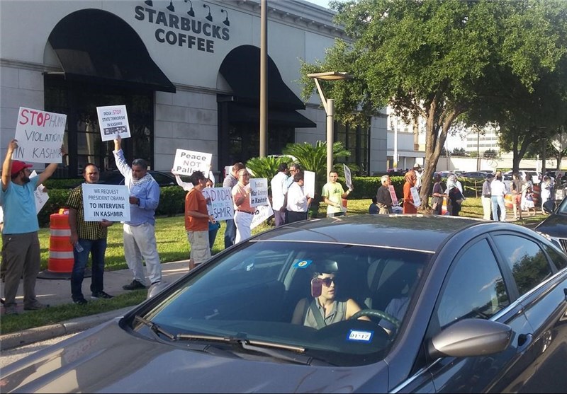 شرکت کنندگان در دست پلاکاردهایی را با خود حمل میکردند که روی آنها نوشته بود: "حمام خون در هند, صلح نه گلوله, رژیم تروریست هند را متوقف کنید, کشمیر را آزاد کنید, دولت اوباما کاری برای کشمیر کند".