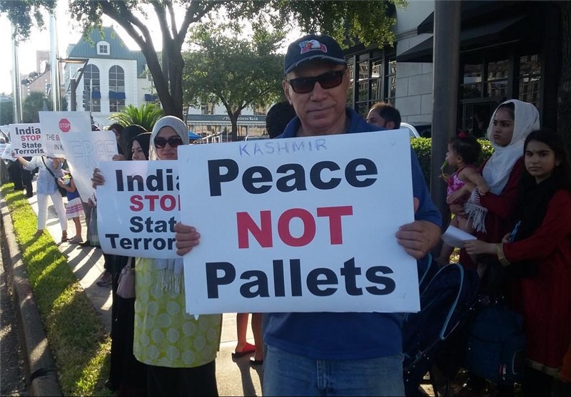 به گزارش خبرنگار خبرگزاری تسنیم در آمریکا، عصر یکشنبه شماری از مسلمانان شهر هوستون ایالت تگزاس علیه جنایات و کشتار مسلمانان در کشمیر تظاهرات کردند.