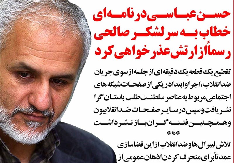 حسن عباسی بابت اظهاراتش درباره ارتش، در نامه‌ای خطاب به فرمانده کل ارتش، رسما از ارتش عذرخواهی کرد.