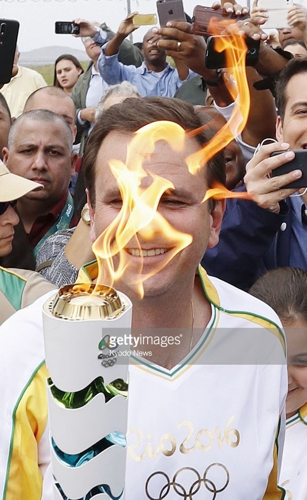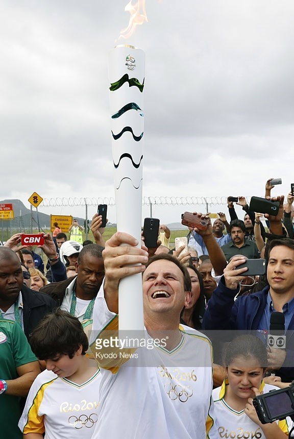 در مراسمی که به همین دلیل برگزار شد، ادواردو پائس شهردار ریودوژانیرو، مشعل را چندین متر حمل کرد و آن را تحویل کند تا ادامه مسیر طی شود.