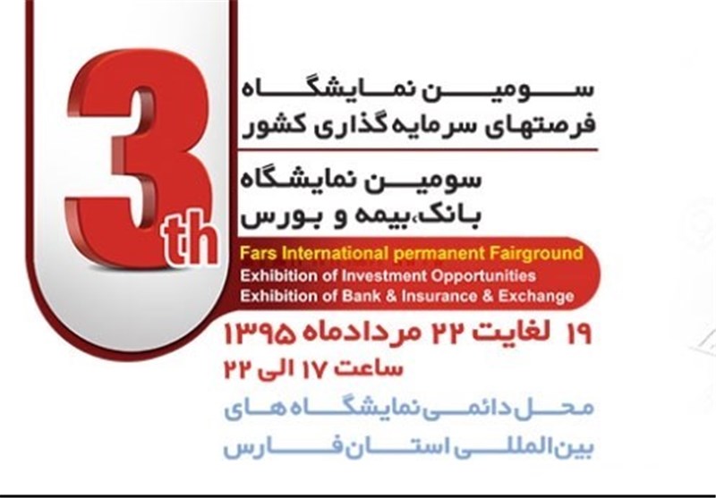 به گزارش خبرگزاری تسنیم از شیراز، سومین نمایشگاه «فرصتهای سرمایهگذاری کشور» و سومین نمایشگاه «بانک، بیمه و بورس» به صورت همزمان از 19 تا 22 مردادماه در محل دائمی نمایشگاههای بینالمللی فارس برگزار میشود.