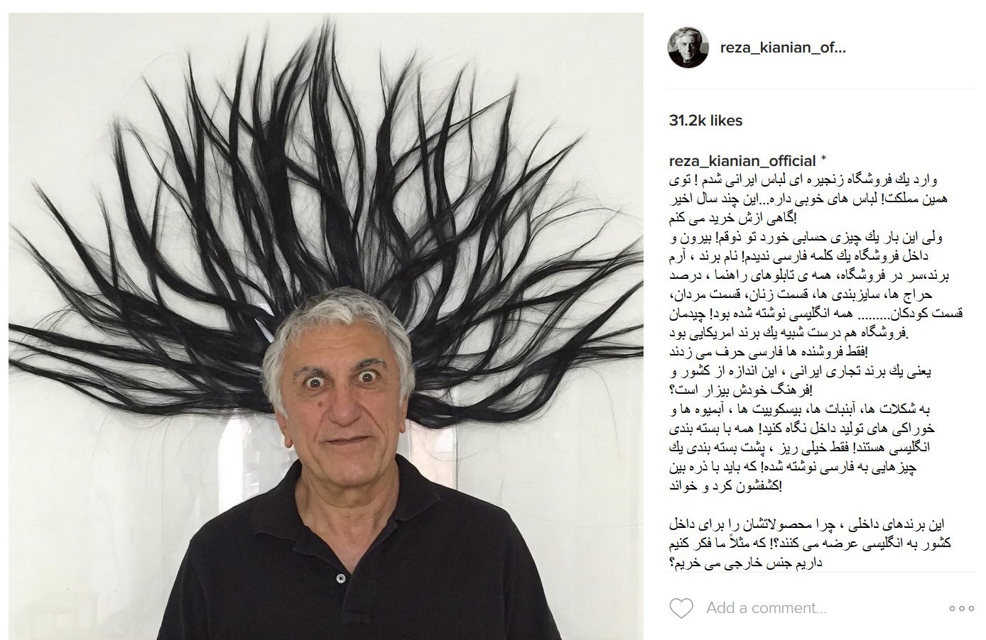 به گزارش باشگاه خبرنگاران تسنیم«پویا»، رضا کیانیان بازیگر سینما و تلویزیون در صفحه اینستاگرامی خود به خارجی بودن فروشگاهی ایرانی واکنش نشان داد.