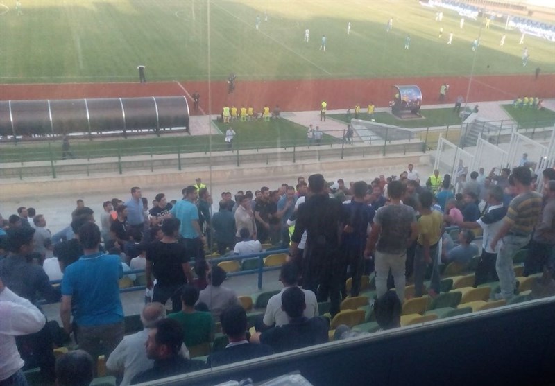 * بین هواداران دو تیم درگیری شدیدی بهوجود آمد تا حدی که مأموران انتظامی با حضور به موقع خود به غائله خاتمه دادند.