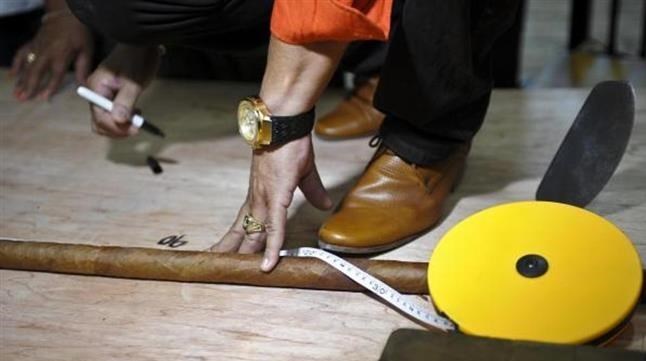 قرار است برای تایید اندازه این سیگار و ثبت آن در کتاب رکوردهای گینس، این سیگار اندازه گیری شود.