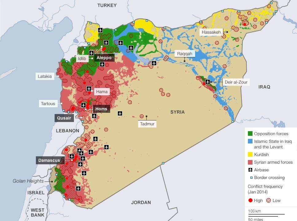 آخرین وضعیت استقرار نیروهای ارتش سوریه، شورشیان، کردها و داعش