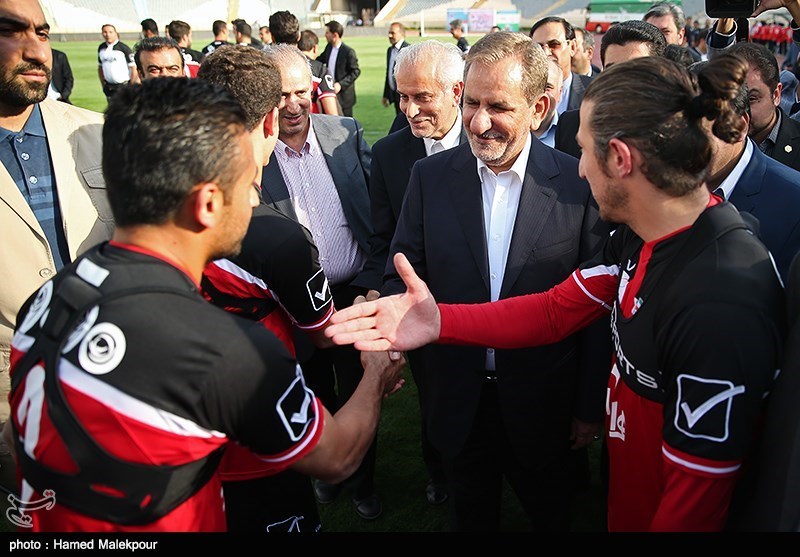 به گزارش خبرنگار ورزشی خبرگزاری تسنیم اسحاق جهانگیری در حاشیه بازدید از تمرین تیم ملی فوتبال گفت: به ورزشکارانی که مورد علاقه مردم هستند و به شما علاقه دارند، خسته نباشید میگویم. فوتبال بسیار مورد توجه است. خوشبختانه بانوان نیز به جمع فوتبال اضافه شدند که نمود خوبی دارد. آنچه مهم است رئیس جمهور و دولت پشتیبان بازیکنان، کادر فنی و مربی خوبمان، کیروش است.