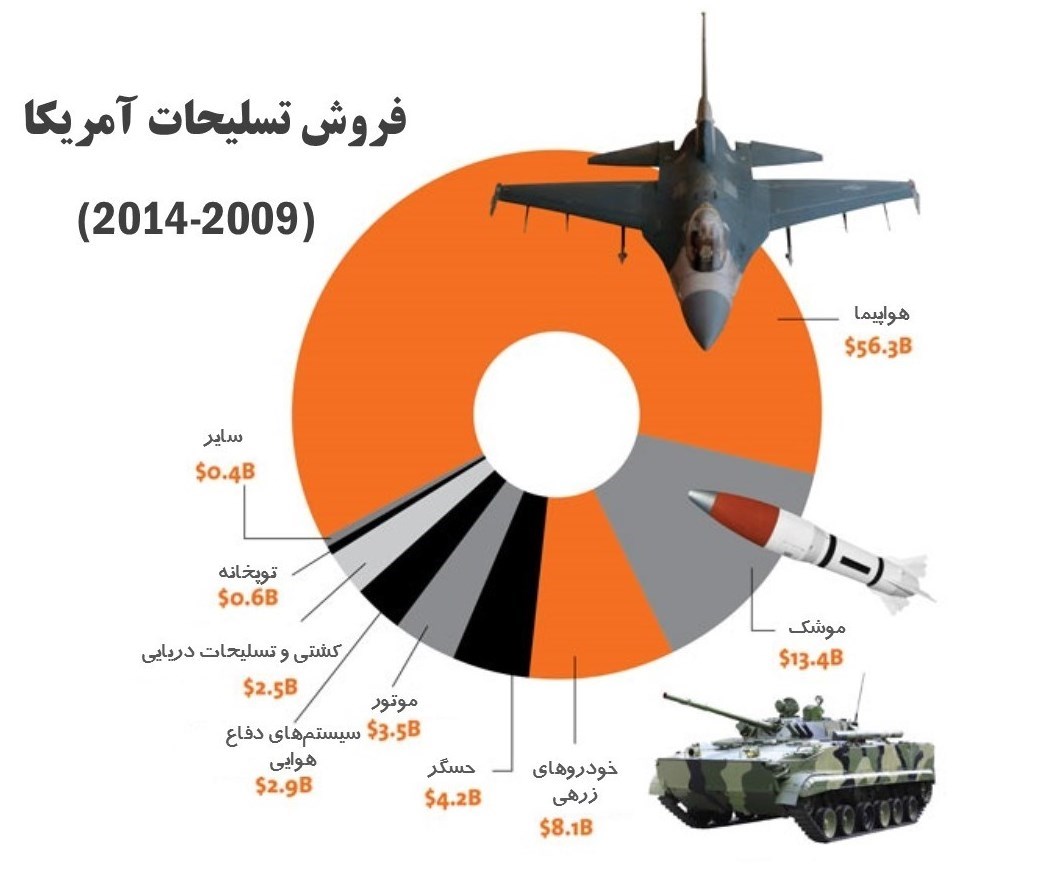 اطلاعاتی که توسط مؤسسه صلح بینالملل استکهلم جمعآوری شده نشان میدهد اکنون خاورمیانه مقصد 32 درصد از تسلیحات صادراتی آمریکا است.