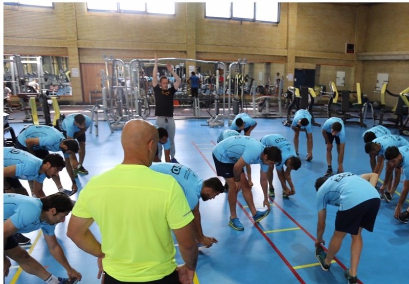 * بازیکنان ابتدا کارهای کششی انجام دادند و سپس زیر نظر استیو جونز، مربی بدنساز انگلیسی کار با وزنه را پشت سر گذاشتند. این تمرین در دو گروه مختلف برگزار شد.