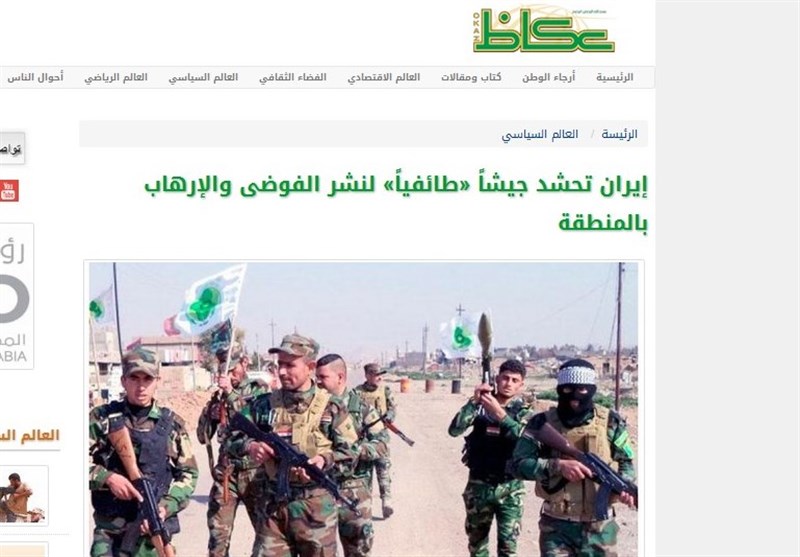 روزنامه عکاظ سعودی با نقل ادعای رسانه‌های آمریکایی مدعی شد که «ایران ارتش طایفه‌ای برای ایجاد هرج و مرج و تروریسم در منطقه جمع کرده است».