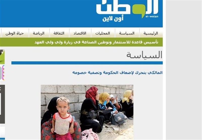 روزنامه الوطن سعودی در یک مطلب ضد ایرانی در تلاش برای ایجاد اختلاف میان گروه‌های سیاسی شرکت کننده در روند سیاسی و به ویژه برای تضعیف ائتلاف اکثریت پارلمان یعنی شیعیان مدعی تلاش نوری المالکی نخست وزیر سابق برای تضعیف  دولت فعلی و حذف رقبایش شد.
