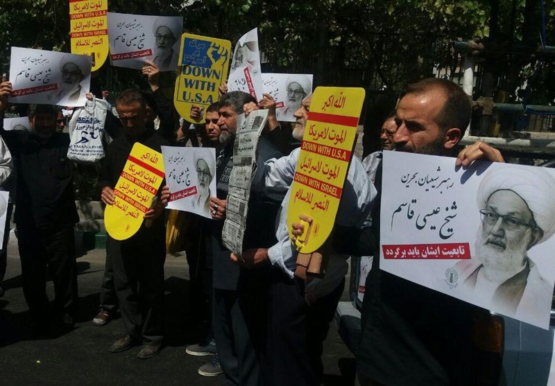 نمازگزاران تهرانی در این مراسم با در دست داشتن پلاکاردهایی جنایات رژیم آلخلیفه در بحرین و لغو تابعیت شیخ عیسیقاسم عالم مبارز بحرینی را نیز محکوم کردند.