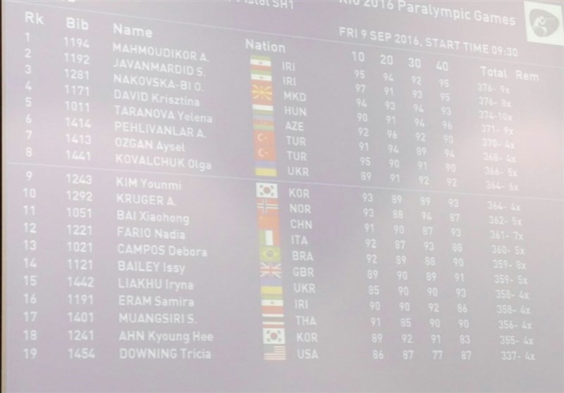 در پایان این رقابت محمودی و جوانمردی با امتیاز 376.9 و 376.8 در ردههای اول و دوم ایستادند و توانستند راهی فینال شوند.