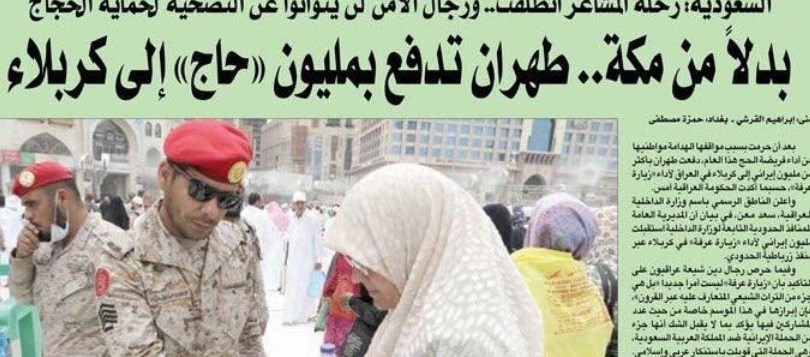 اسکای نیوز امارات در ادامه تطهیر آل سعود از جنایات بیشمارش علیه مسلمانان در یمن، سوریه، عراق و مناطق دیگر و نیز مدیریت فاجعهبارش در حج و عمره در تلاش برای تخریب وجهه ایران مدعی میشود: «حج بهشیوه ایران بر تلاشهای تهران برای شکاف در صفوف مسلمانان از طریق تبدیل قبله آنها و تحمیل اماکن حج جایگزین بهجای آنچه خداوند واجب کرده است، در سایه تدابیر امنیتی شدیدی که مقامات محلی در کربلا برای حفظ امنیت زائران انجام میدهند، دلالت میکند».