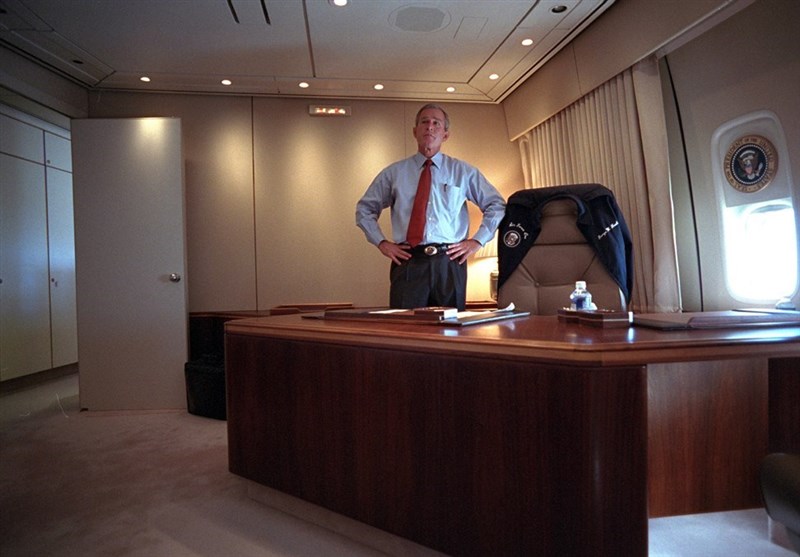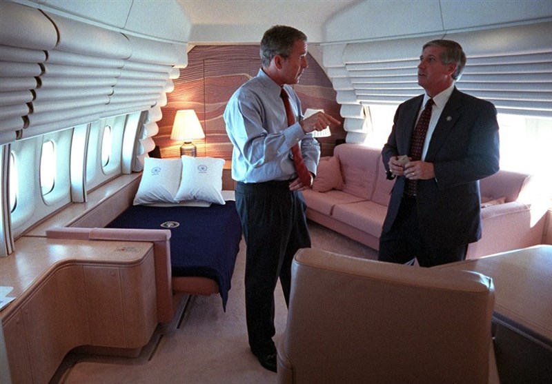 دفتر رئیس جمهور آمریکا در داخل هواپیمای مخصوص او- گیجی و دستپاچگی بوش