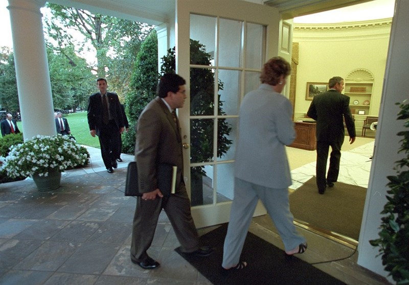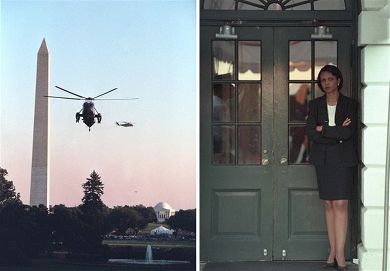 «کاندالیزا رایس» مشاور امنیت ملی بوش در انتظار اجازه ورود به دفتر رئیس جمهور آمریکا پس ار حادثه 11 سپتامبر