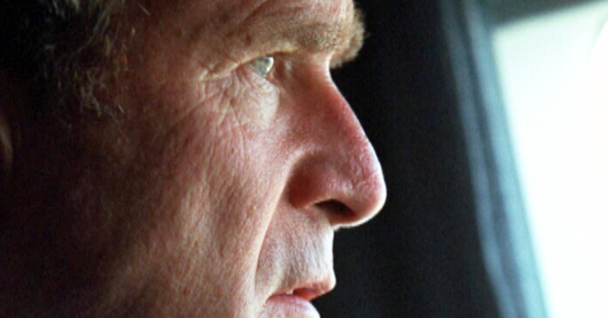 بوش برای یک سفر کوتاه به فلوریدا رفته بود و زمانی که هواپیمای وی قصد داشت به واشنگتن برگردد حادثه 11 سپتامبر به وقوع پیوست. پس از اینکه بوش و همراهانش از وقوع برخورد چندین هواپیما به ساختمان تجارت جهانی و پنتاگون اطلاع یافتند ترجیح دادند تا چند ساعتی را در آسمان پرواز کنند و زمانی که وضعیت امنیتی کاخ سفید را کاملا امن احساس کردند در واشنگتن فرود بیایند. طی این مدت هواپیمای بوش بر فراز خلیج مکزیک در حال پرواز و گشت زنی بود.
