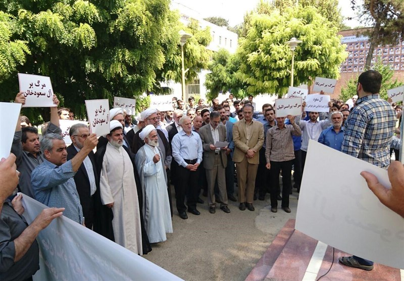 دانشجویان و اساتید در این تجمع با سر دادن شعارهایی، همچون «مرگ بر آمریکا»، «مرگ بر اسرائیل»، «مرگ بر آل سعود»، خیانت‌های رژیم آل سعود علیه مسلمانان منطقه را محکوم کردند.
