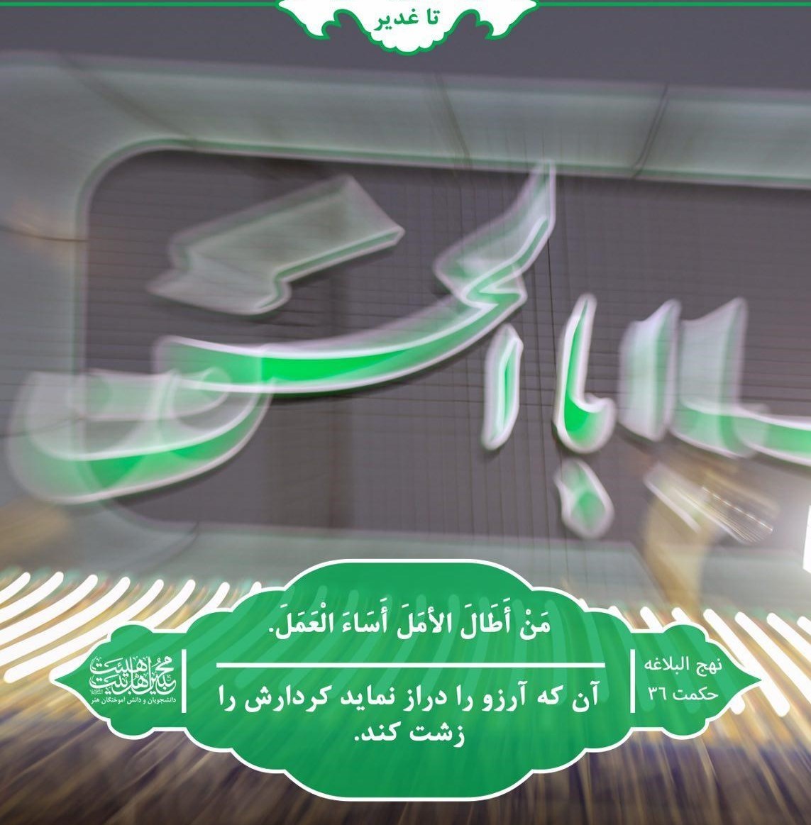 18 ذی الحجه مصادف با عید غدیر خم عید بزرگ مسلمانان است. هیئت دانشگاه هنر تهران ضمن انتشار عکسی مفهومی به حکمت 26 نهج البلاغه اشاره کرده است.