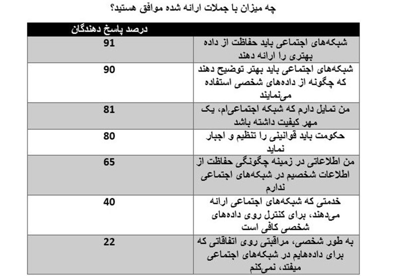 در پاسخ به این دو سوال بیشترین پاسخها با اختلاف زیاد به مواردی داده شدند که مربوط به حفاظت از داده و حریم شخصی کاربران است.