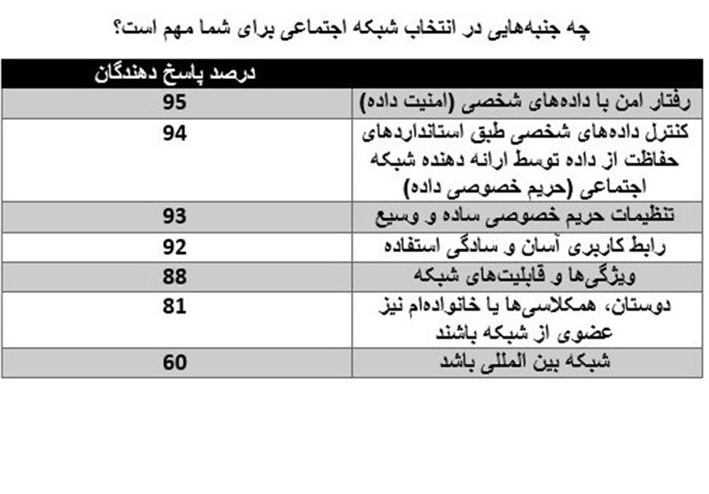 • چه جنبههایی در انتخاب شبکه اجتماعی شما مهم است؟