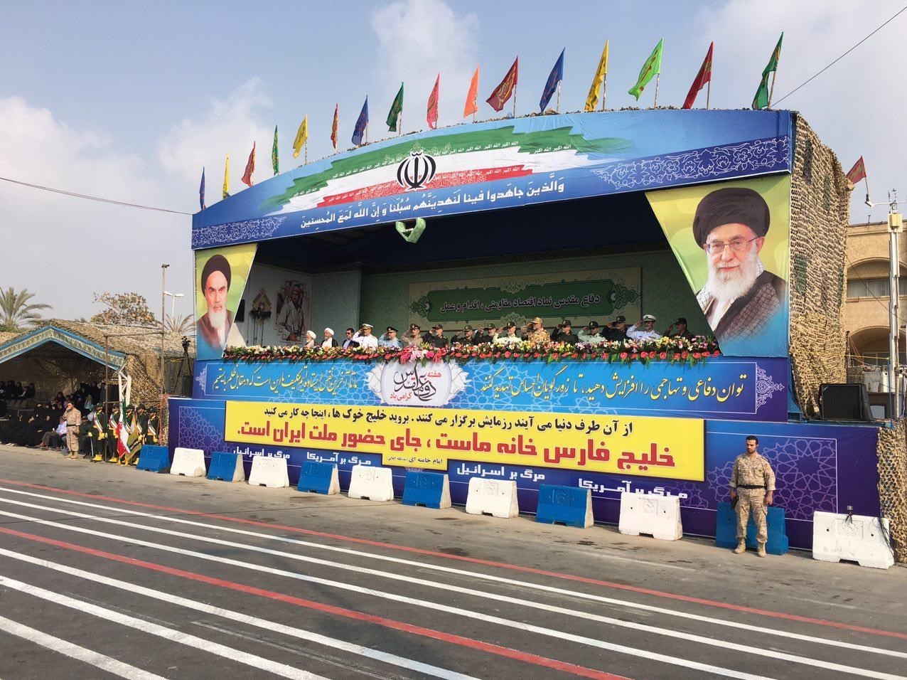 سرلشکر غلامعلی رشید فرمانده قرارگاه مرکزی خاتمالانبیاء(ص)، امیر موسوی جانشین ستادکل نیروهای مسلح، سرلشکر محمدعلی جعفری فرماندهکل سپاه پاسداران، سردار علی فدوی فرمانده نیروی دریایی سپاه، امیر شاهصفی فرمانده نیروی هوایی ارتش، دریادار سیاری فرمانده نیروی دریایی ارتش، امیر حیدری جانشین فرمانده نیروی زمینی ارتش و سایر مقامات عالیرتبه کشوری و لشکری در این رژه حضور دارند.