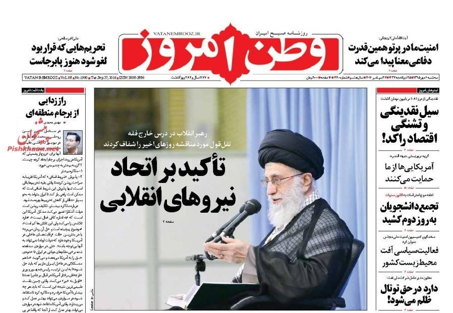 به گزارش گروه رسانه‌های خبرگزاری تسنیم، تصاویر صفحات نخست روزنامه‌های کشور امروز سه‌شنبه 6 مهر به‌شرح زیر منتشر می‌شود: