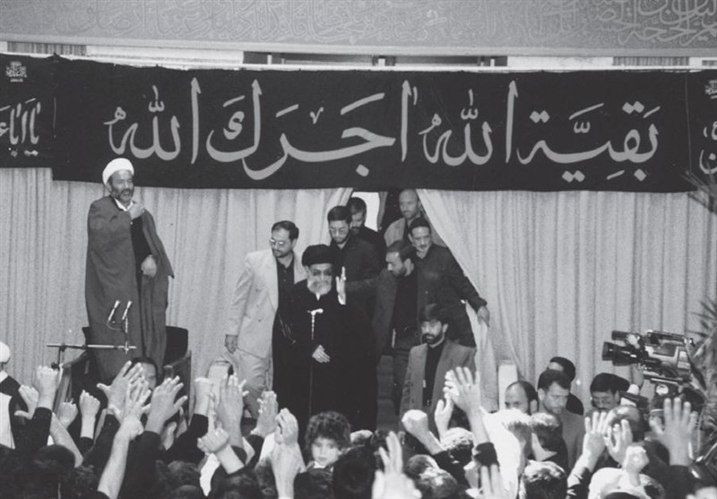 عکس/  رهبر انقلاب در مراسم عزاداری تاسوعای حسینی در سال 77