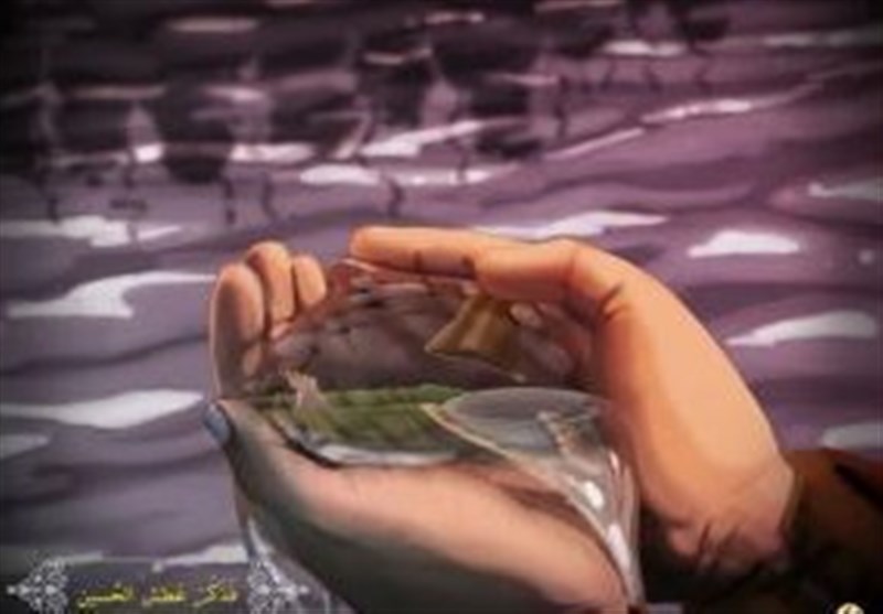ـ تشنگى حسین (ع) شدید و طاقت فرسا شد، آن حضرت همراه برادرش عباس (ع) بر فراز تپّه مشرف بر آب فرات رفتند که وارد آب فرات شوند، عباس (ع) جلوتر حرکت مىکرد، سپاهیان عمر سعد جلو آنها را گرفتند و درگیرى شدیدى رخ داد، مردى حسین (ع) را هدف تیر قرار داد، تیر به زیر چانه آن حضرت اصابت کرد، حسین (ع) آن تیر را بیرون کشید، دستهایش را زیر گلو گرفت، کفهاى دستش پر از خون شد، سپس آن را به طرف آسمان پاشید و عرض کرد: «اللّهمّ انّى اشکوا الیک ما یفعل بابن بنت نبیّک»، خدایا! شکایت آنچه را با پسر دختر پیامبرت انجام شود به درگاه تو مىآورم، در این درگیرى، عباس (ع) را از حسین جدا کردند و از هر طرف به عباس (ع) حمله کردند تا او را کشتند، حسین (ع) در سوگ شهادت عباس گریه بسیار سخت کرد، شاعر عرب در این باره چنین گوید: