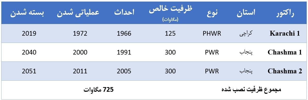 پاکستان هماکنون در سه راکتور هستهای 725 مگاوات برق تولید میکند.