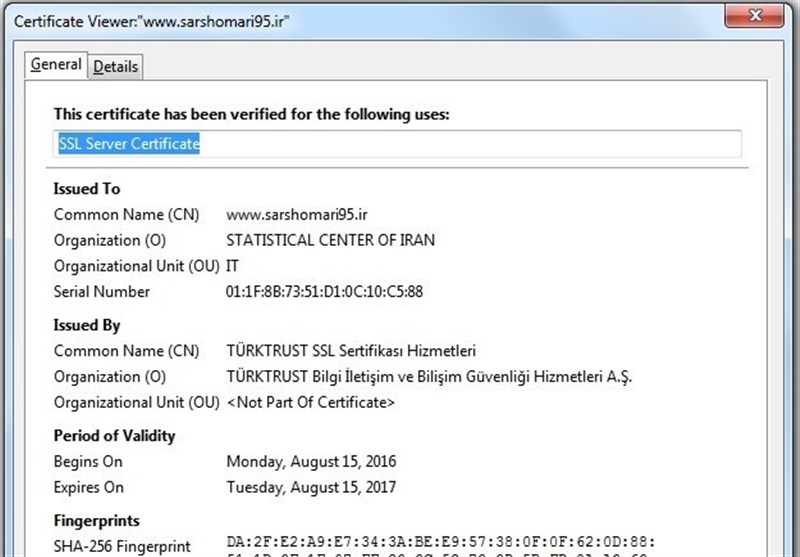 اما با این حال برخی شائبهها در ارتباط با امنیت درگاه سرشماری95 با حضور شرکتی ترکی در بخش ارائه گواهینامه دیجیتال SSL وجود دارد.