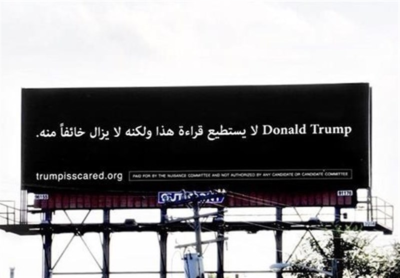 این بیلبورد تبلیغاتی که هزینۀ آن از سوی یکی از بزرگترین کمیتههای اقدام سیاسی (پَک) مخالف ترامپ تأمین شده، در منطقهای نصب شده که تراکم جمعیتی شهروندان عرب زبان امریکا در آن زیاد است.