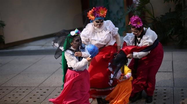 مکزیکیها بر اساس یک آیین قدیمی در این کشور، جشنواره مردهها را با برگزاری مراسم شادی و پخش کردن شیرینی برپا میکنند.