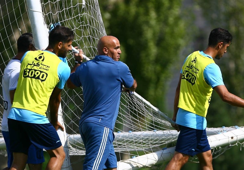 * بازیکنان از ساعت 13 وارد زمین تمرین شدند و زیر نظر مربی بدنساز به حرکات کششی و نرمشی روی آوردند. آبی‌پوشان در ادامه دور زمین نرم دویده و در ادامه زیر نظر مربی بدنساز به تمرینات هوازی روی آوردند. بخش بعدی تمرین، کار با توپ،کارهای ترکیبی، پاسکاری و شوت به سمت بود.