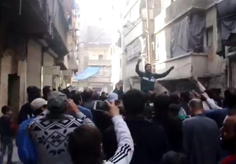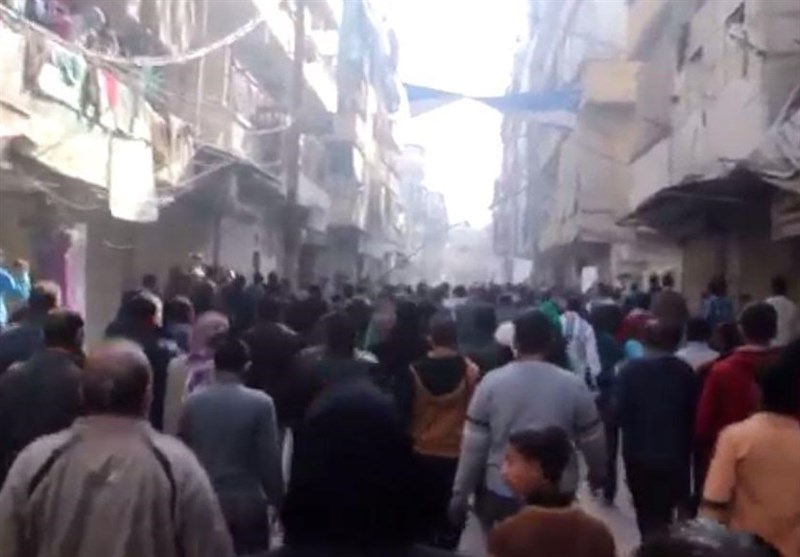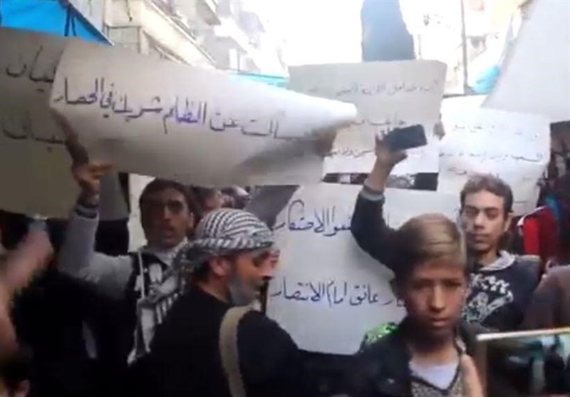 به گزارش خبرنگار خبرگزاری تسنیم در سوریه، شرکت کنندگان در این تظاهرات که نشان میدهد از ادامه حضور تروریستها در مناطق مسکونی خود به ستوه آمدهاند به سبب ادامه اقدامات سلطهگرانه آنها و سیطرهشان بر تمام امور زندگی ساکنان شرق حلب در تنگنای شدید قرار گرفتهاند.